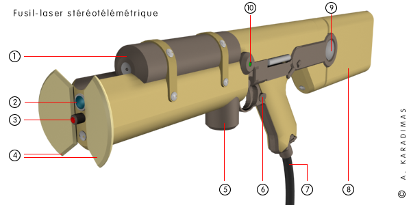 | 3. Emetteur du signal télémétrique | 8. Boîtier de l'interface arme/support | |||