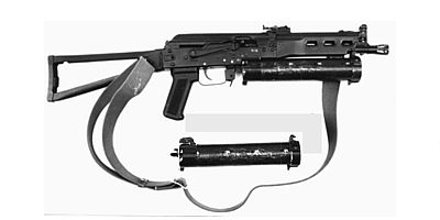 La plateforme des séries AR a servi à de nombreuses expériences, dont ce "Light FlameThrower", permettant de projeter des flammes sans être encombré par un appareillage lourd et dangereux. L'arme porte une petite bombonne de combustible sous haute pression, qui suffit pour deux jets d'une seconde. La bombonne peut être remplacée en quelques secondes, à la manière d'un chargeur. Note : l'arme ne peut pas tirer de balles. |