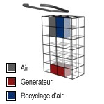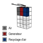Ce module convertit le dioxyde de carbone en oxygène et en carbone par éléctrochimie. La réaction est auto-entretenue sans perte de composants chimique. Ce module peut donc fonctionner indéfiniment, pourvu que l'on vide le récéptacle à carbone chaque semaine. |