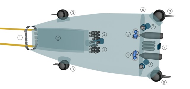 | 3. Tourelles arrieres | 7. Propulseurs lateraux | |||